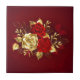 La composition de deux roses rouges artistiquement peintes et d'un rose doré, décoré d'or, feuilles de bijoux sur arrière - plan texturé.