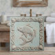 This 'Trompe L’oeil Marine Life' decorative fish tile, combines seafoam green, sandy beige, and ivory with subtle coral and taupe undertones, creating a serene, timeworn look that feels both elegant and organic. The illusion of raised relief detailing gives the tile a sculpted appearance, framed by ornate flourishes reminiscent of vintage maritime carvings. Ideal for coastal kitchens, bathrooms, or accent walls, it adds a touch of coastal charm to any space. Search ID1190a thru j to see all the striking coastal elements in this design set. Note: design may contain generative content