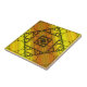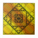 Trois styles de fractales dessinées à la main, y compris les triangles Siepinski, les joints apolloniens et un design carré à thème similaire, composent les couches de ce mandala géométrique, superposées sur un dégradé jaune et orange vif. Cette tuile peut être encadrée pour créer un trivet ou placée à l'intérieur d'un couvercle de boîte cadeau en bois.