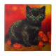 Carrelage avec un chaton noir dans le style de Vincent van Gogh! Ce chaton moelleux pose avec des fleurs rouges. Le cadeau parfait pour les amoureux de les chats et les collectionneurs d'art hollandais !