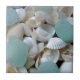 Beau verre vert clair de mer entouré par des coquilles de mer blanche