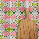 Design de carreaux de céramique vibrante avec un motif sans soudure fait de formes abstraites symétriques dans les tons rose, vert et gris.