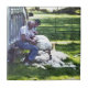 Une aquarelle de deux fermiers qui lattent à la main des moutons et un art rarement vu en ces temps modernes.