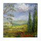 Peinture épaisse d'Impasto des villages éloignés de la Toscane. Avec Cypress italien et pavots. Peinture de couteau de palette par la marque Mazzarella de "Mazz" d'artiste. © 2014 de Copyright