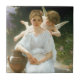 Whisperings of Love (aka Première Rêverie ou Première Reverie) (1889) de Bouguereau est une mythologie vintage de l'époque victorienne, un portrait réaliste d'art, mettant en scène une belle jeune femme assise sur le rocher, avec un vase sous son bras et un ange qui murmure des secrets à l'oreille. À propos de l'artiste : William-Adolphe Bouguereau (1825-1905) était un peintre académique en réalisme et un fervent traditionaliste dont le style réaliste et les thèmes mythologiques étaient des interprétations modernes des sujets classiques.