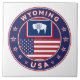 Badge de Wyoming avec drapeau du Wyoming et drapeau des États-Unis couleurs, forme arrondie. Emblème du Wyoming. Sceau du Wyoming. Collection USA Etats.