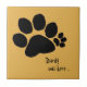 Empreinte de patte pour marquer le passage de votre chat polydactyle (Multi-toed) préféré. Texte : "Darby était là..." Personnalisez avec le nom de votre animal, Customisez/modifiez également pour changer la couleur arrière - plan (par défaut, le teint orange).