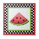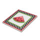 Ajoutez de la couleur et de la fraîcheur à votre table à manger ou à votre décor de cuisine en utilisant ces carreaux et Trivets en carton Carré Watermelon délicieux. Watermelon est une illustration originale très alléchante créée par Debi Payne Designs. Sa belle ombrage variée de rose pastèque est le point central de cette lustre tranche de pastèque reposant au sein d'une épaisse croûte croustillante de verts variés. Accentuant cette tranche de pastèque sont les graines noires placées au hasard. Cette délicieuse tranche de pastèque est entourée d'une bordure classique en damier noir et blanc. Personnalisez les produits Watermelon en ajoutant votre nom ou le texte que vous choisissez. Recueillir tous les fruits et légumes dans la collection de cuisine Debi Payne Designs.