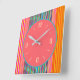 Cette horloge arty comporte une bordure colorée rayée de bonbons avec un centre rose chaud. Numéros de citron d'or pour correspondre complète cette conception! Disponible en forme carré ou ronde.