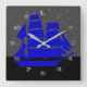 Image d'un voilier bleu à gréement carré. Arrière - plan est noir pour l'eau et gris pour le ciel. Les chiffres sont faux métalliques.