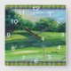 Une aquarelle originale d'Anne Ormsby d'un vert de golf orne cette belle horloge murale.