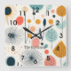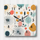 Ajoutez une touche de kitsch confortable à votre maison, roulottes de voyage ou nid de chalet avec cette horloge murale de style motif du milieu du siècle. Créé dans une fleur abstraite rétro, feuilles et pods motif dans les tons orange et bleu turquoise avec des accents noirs frappants. Vous aurez le choix entre rond ou carré. Voir plus dans cette collection de design à Camp and Cottage sur Zazzle.