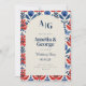 Cette dalle colorée bleue et rouge de talavera inspiré faire-part de mariage mexicaine est la façon parfaite pour les proches invitations de célébrer votre mariage à thème ou destination mexicaine! Elégante invitation de mariage avec images florales et arche ainsi que des lettres monogrammes pour le nouveau couple marié!