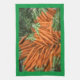 Farbiges Foto von Karotten mit den grünen Spitzen.