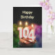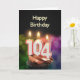 Un gâteau d'anniversaire avec des bougies. Les bougies sont composées du numéro 104, pour un 104ème anniversaire. Une carte d'anniversaire adaptée à tous.