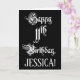 Le devant de cette carte de voeux opulente et ornée d'anniversaire comporte le message "Joyeux 11e anniversaire", en texte somptueux de style script, sur un arrière - plan de couleur noire. L'intérieur a un message de voeux d'anniversaire modifiable, ou peut-être peut-être être effacé et laissé vide si un message doit être écrit à la main à la place. Une carte de voeux d'anniversaire élaborée et modifiable comme celle-ci pourrait être une façon respectable d'envoyer un message d'anniversaire à quelqu'un qui célèbre son onzième anniversaire. [~Z0000554]