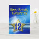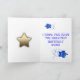 Une grande étoile dorée brillante dans laquelle vous pouvez mettre le nom du garçon d'anniversaire. L'arrière - plan est bleu avec de beaux tourbillons blancs.