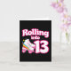 Ce design de fête de patinage est parfait pour une fête de patinage à rouleaux ou un thème d'anniversaire pour une fille de 13 ans. Si la fille d'anniversaire aime le roller skate, elle ADORE ce skate party design! Caractéristiques style rétro 'Rolling in 13' anniversaire citation avec roller cool graphique avec arc-en-ciel & étoiles qui est amusant et unique. Fun roller skate design pour le 13ème anniversaire d'une fille!
