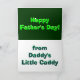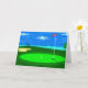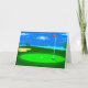 Ce sera une Fête des pères heureuse quand tu donneras cette carte à papa du petit caddy de papa. Carte représentant une illustration numérique du 18e trou sur un terrain de golf avec un ciel bleu nuageux, lac, arbres, piège à sable et le ballon de golf assis sur le vert, à quelques centimètres de la tasse en attendant d'être mis en place.