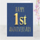 1er anniversaire design sur un arrière - plan en faux cuir bleu.