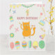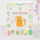 Carte 1er anniversaire. Ballons et chat roux.