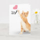 Chat tabby or avec ballon de coeur rose pour 1er anniversaire sur arrière - plan blanc. La couleur Arrière - plan peut être modifiée