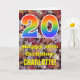 L'avant de cette carte de voeux d'anniversaire colorée, rustique et d'inspiration nature dispose d'un grand nombre de "20" ayant un motif inspiré par un dégradé de arc-en-ciel. Il comporte également le message "Joyeux 20e anniversaire", et un nom personnalisable. L'arrière - plan de l'avant de la carte présente une chute rustique feuilles automne motif. L'intérieur comporte un message de voeux d'anniversaire personnalisable, ou peut-être pourrait-il être effacé et laissé vide si un message doit être écrit à la main à la place. Une carte d’anniversaire personnalisée comme celle-ci pourrait être une façon amusante de souligner le vingtième anniversaire de quelqu’un. [~Z0000384]