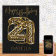 Carte de 21e anniversaire personnalisée avec ballons de papier poster de animal en noir et or. Les ballons empreintes de léopard branchés sont encadrés de confettis noir et or et Happy Birthday est écrit à la main en or. Le modèle est prêt à personnaliser l'avant de la carte et à ajouter un message à l'intérieur - ou vous pouvez laisser l'intérieur vide si vous préférez écrire à la main à l'arrivée.