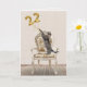 Chat de tabby gris avec ballons de feuille d'or sur une chaise à l'ancienne pour 22e anniversaire. Le texte intérieur est modifiable.