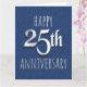 Design du 25e anniversaire d'argent sur un arrière - plan en faux cuir bleu.