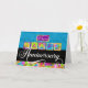 Il s'agit d'une carte colorée de 25 ans d'anniversaire d'employé d'entreprise, au format paysage, avec le texte Happy Anniversary et couleurs vives. Le texte "25 ans" est en haut et est écrit en blanc dans une police de script sur une zone de texte à effet en plume avec des bordures blanches et à motifs. Le mot 'HAPPY' est écrit avec chaque lettre sur un effet séparé, en couches, zone de texte carré, dans différentes couleurs en gras d'orange, vert, bleu, rose, violet et à motif. Les lettres, dans des couleurs assorties, sont écrites dans une police simple, majuscule, et soulignées en blanc. Sous HAPPY se trouve le texte, 'Anniversaire', écrit en blanc, dans une police de script flottante, nettement contrastée. L'arrière - plan se compose de trois sections horizontales. La partie supérieure est bleue avec une légère couche de motif. La partie centrale, sous le texte 'Anniversaire' est noire, et la partie inférieure est le même motif de couleur vive que certaines des zones de texte mentionnées ci-dessus. Cette carte est dotée d'une palette de couleurs amusante et éclatante, associée à une mise en forme graphique qui a créé un design contemporain qui parle à la fois de célébration et de la jeune entreprise. © Natalie Kinnear Cartes CETTE CARTE PEUT ÉGALEMENT ÊTRE ACHETÉE À MON MAGASIN EN LIGNE AVEC DES UNIVERS DE CARTES DE SALUT QUI ONT DES PARTENAIRES D'IMPRESSION AUX ÉTATS-UNIS ET AU ROYAUME-UNI : http://www.greetingcarduniverse.com/business/employee-relations/employee-anniversary/years-of-service-specific/employee-anniversary-25-years-1512372?gcu=47771017551