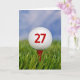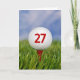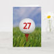Boule de golf blanc sur tee rouge dans l'herbe pour 27ème anniversaire. Le numéro d'âge sur la balle de golf peut être changé.