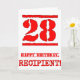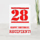 Cette carte de voeux amusante à thème d'anniversaire comporte un grand numéro rouge "28" avec un look inspiré par un tampon en caoutchouc, en plus du message de voeux d'anniversaire "HAPPY BANTHDAY", et un nom personnalisé sur le devant. L'intérieur a un message de voeux d'anniversaire personnalisable, ou peut-être peut-être être effacé et laissé vide si un message doit être écrit à la main à la place. Une carte de voeux d’anniversaire personnalisable comme celle-ci pourrait être utilisée pour souligner le vingt-huitième anniversaire de quelqu’un. [~Z0000524]