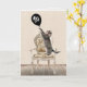 Chatte de tabby gris qui tend vers un ballon noir sur une chaise à l'ancienne pour 30 ans. Le texte peut être modifié à n'importe quel âge.