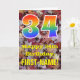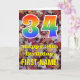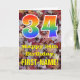 L'avant de cette carte de voeux d'anniversaire colorée, d'inspiration automnale et d'inspiration nature présente un grand nombre de "34" avec un motif inspiré par un gradient de spectre arc-en-ciel, ainsi que le message "Happy 34th Birthday", et un nom personnalisable. L'arrière - plan de l'avant de la carte présente une chute rustique feuilles automne motif. L'intérieur comporte un message de voeux d'anniversaire modifiable, ou peut-être pourrait-il être effacé et laissé vide si un message doit être écrit à la main à la place. Une carte d'anniversaire personnalisée comme celle-ci pourrait être une façon amusante d'envoyer des voeux d'anniversaire à quelqu'un qui célèbre son trente-quatrième anniversaire. [~Z0000384]