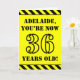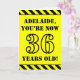 Le recto de cette carte de voeux d’anniversaire audacieuse et captivante comporte un nom personnalisé et le message "VOUS AVEZ MAINTENANT 36 ANS !" en texte noir inspiré par un pochoir sur un arrière - plan de couleur jaune. Il y a aussi un motif rayé jaune et noir accrocheur aux bords supérieur et inférieur de l'avant. L'intérieur comporte un message de voeux d'anniversaire modifiable, ou peut-être pourrait-il être effacé et laissé vide si un message doit être écrit à la main à la place. Une carte d'anniversaire personnalisée comme celle-ci pourrait être une façon amusante d'envoyer des voeux d'anniversaire à quelqu'un qui célèbre son trente-sixième anniversaire. [~Z0000413]