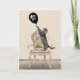 Chatte de tabby gris qui tend vers un ballon noir sur une chaise à l'ancienne pour 37ème anniversaire. Le texte peut être modifié à n'importe quel âge.