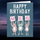 Bonne carte d'anniversaire pour quelqu'un avec un nom de 3 lettres. Fun Happy Birthday Rabbits Card avec illustration de lapins en rose et bleu. Les lapins tiennent des cartes pour épeler le nom.