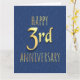 Conception du 3e anniversaire sur un arrière - plan en faux cuir bleu. Peut être utilisé pour n'importe quel type de 3ème anniversaire.