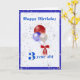 Cette carte est lumineuse et gaie. Il y a un ballon rouge avec des étoiles avec un ballon blanc et bleu tout attaché ainsi qu'un arc rouge sur un arrière - plan étoilé, carte d'anniversaire parfaite pour un enfant.