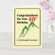 Une carte humoristique pour tous ceux qui ont atteint l'âge de 40 ans. Doté d'une chaîne de montagnes de 40 en rouge au sommet du sommet le plus élevé. Le message est "Félicitations pour votre 40e anniversaire". Le poinçon de "It's All Downhill From Here" est en bas. Le tout posé sur un arrière - plan crème contrasté. Garanti de lever un sourire avec le destinataire,. Mettez votre propre message spécial 40e anniversaire à l'intérieur. Visitez notre magasin pour plus de grands designs