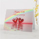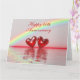 Carte "Joyeux 40e anniversaire" avec des coeurs de rubis flottant sur l'eau sous un arc-en-ciel, et vers personnalisable à l'intérieur.