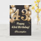 43e Anniversaire Black and Gold Balloons Confetti Card. Pour plus de personnalisation, cliquez sur le bouton "Customiser" et utilisez notre outil de conception pour modifier ce modèle.