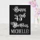 Le devant de cette carte de voeux d'anniversaire formelle et fantaisiste comporte le message "Happy 43rd Birthday", en texte de script élaboré, sur un arrière - plan de couleur noire. L'intérieur a un message de voeux d'anniversaire personnalisable, ou peut-être peut-être être effacé et laissé vide si un message doit être écrit à la main à la place. Une carte de voeux d’anniversaire luxueuse et personnalisée comme celle-ci pourrait être utilisée pour souligner le quarante-troisième anniversaire de quelqu’un. [~Z0000554]