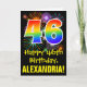 L'avant de cette carte de voeux d'anniversaire passionnante, amusante et colorée comprend un grand nombre de "46" avec un motif inspiré par un gradient de spectre arc-en-ciel, ainsi que le message "Happy 46th Birthday," et un nom de destinataire personnalisable. Le front a en outre un motif arrière - plan coloré éclatant feux d'artifice inspiré des feux d'artifice. L'intérieur comporte un message de voeux d'anniversaire personnalisable, ou peut-être pourrait-il être effacé et laissé vide si un message doit être écrit à la main à la place. Une carte d’anniversaire personnalisable comme celle-ci pourrait être une façon amusante de célébrer le quarante-sixième anniversaire de quelqu’un. [~Z0000442]