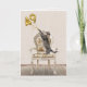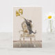 Chat de tabby gris avec ballons de feuille d'or sur une chaise à l'ancienne pour 49e anniversaire.