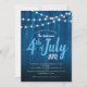 Cet arrière - plan de fête 4 juillet barbecue présente des caractéristiques et un style rustique en bois bleu foncé accentué par des cordes de lumières sur le dessus. C'est parfait pour votre jardin en famille le 4 juillet.