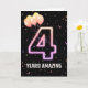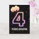 Ballons de fête et confettis sur arrière - plan noir avec le néon numéro 4 pour un 4ème anniversaire.