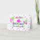 A fun party birthday card for a 4 ans old granddaughter with confeti in the background in pastel colors, le center with colorh colorful "Happy 4th Birthday" et "Granddaughter" in black. On the left side of the words you find a pink polka dot balloon and a green polka dot balloon, a party on right.