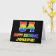 La façade de cette carte de voeux colorée, amusante et joyeuse à thème d'anniversaire comporte un grand nombre de "54" et le message "HAPPY BANTHDAY", tous deux ayant un dégradé arc-en-ciel inspiré colorant motif, ainsi qu'un nom de destinataire personnalisé jaune gras. L'avant est également orné d'un arrière - plan de couleur noire. L'intérieur comporte un message de voeux d'anniversaire personnalisé, ou peut-être pourrait-il être effacé et laissé vide si un message doit être écrit à la main à la place. Une carte d’anniversaire personnalisable comme celle-ci pourrait être une façon amusante de célébrer le cinquante-quatrième anniversaire de quelqu’un. [~Z0000472]